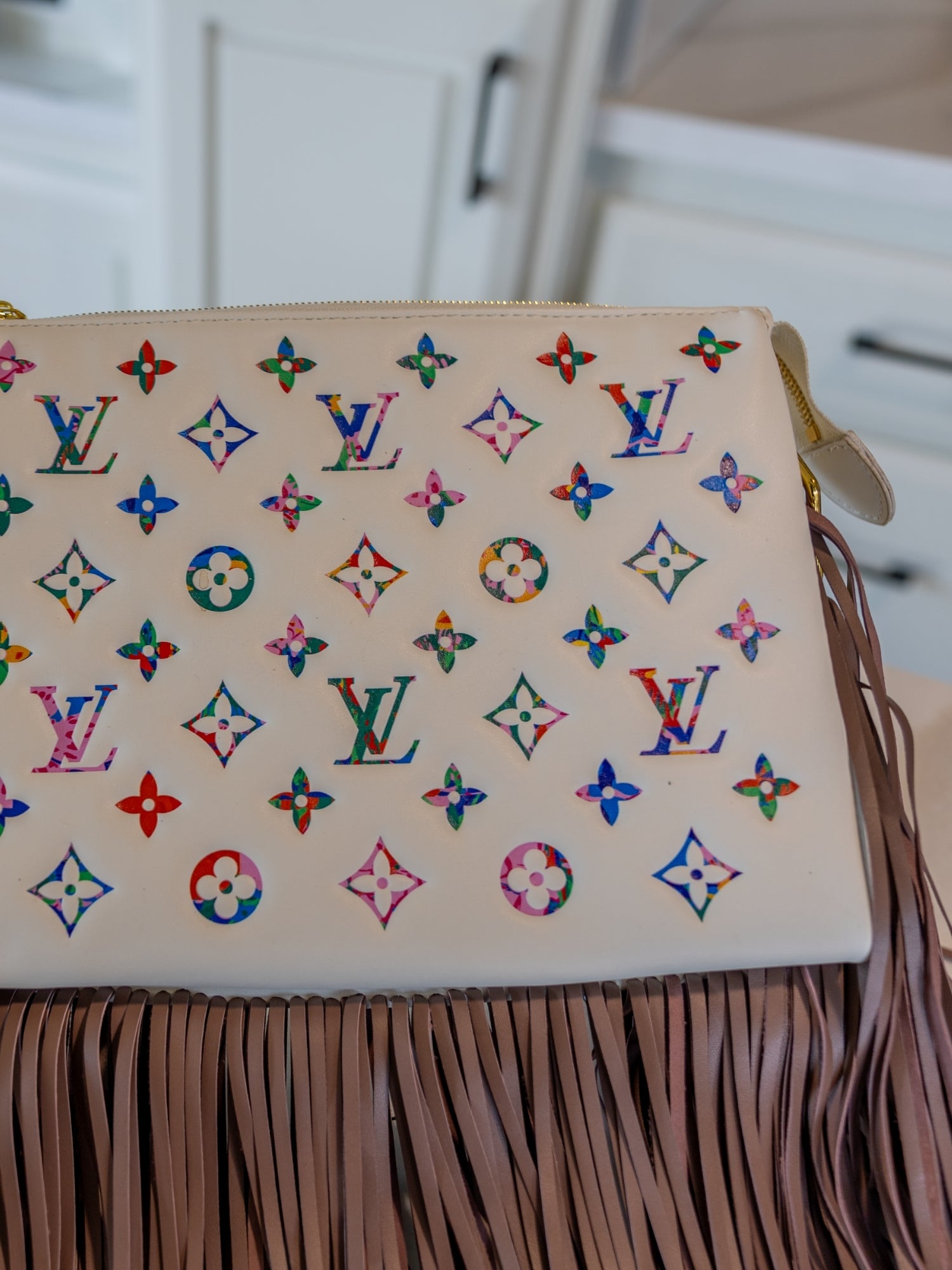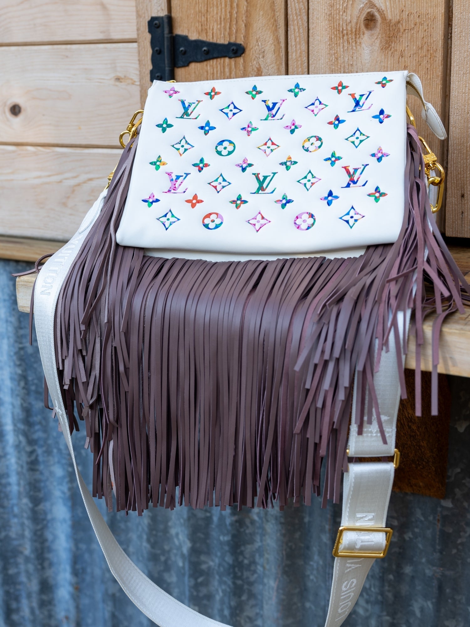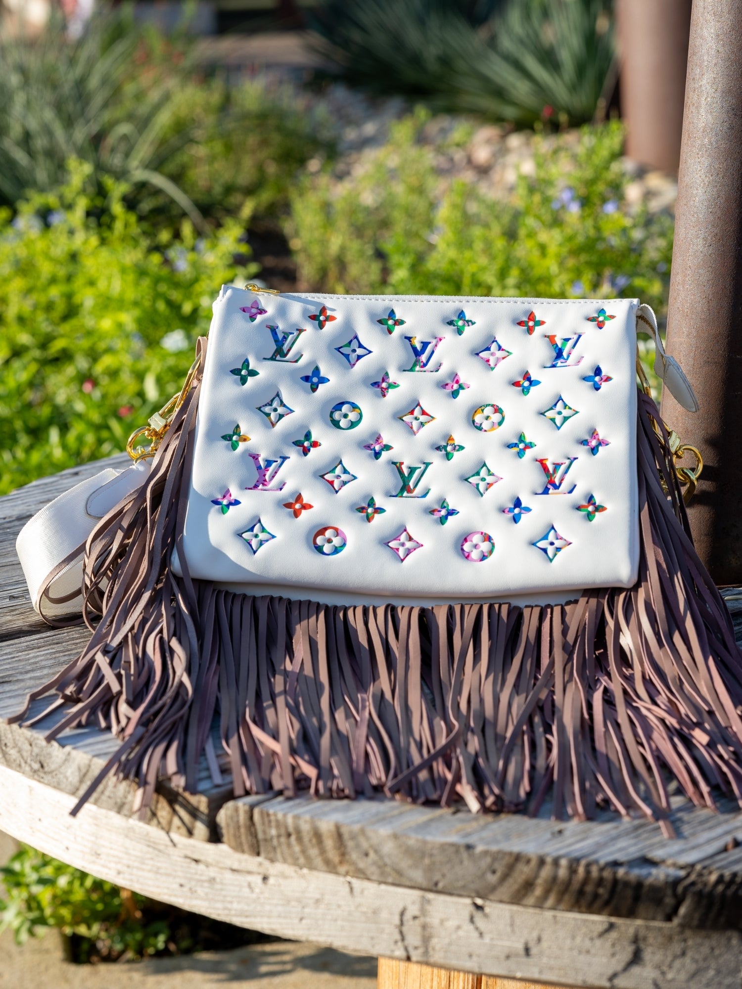 The Bloom pairs the artistry of a limited-edition floral monogram with the gentle movement of lavender deerskin fringe. Every detail is crafted to embody quiet confidence and timeless beauty—from the delicate texture of the fringe to the luxe chain and nylon straps. Light, flowy, and full of grace, The Bloom is where modern elegance meets handcrafted soul!